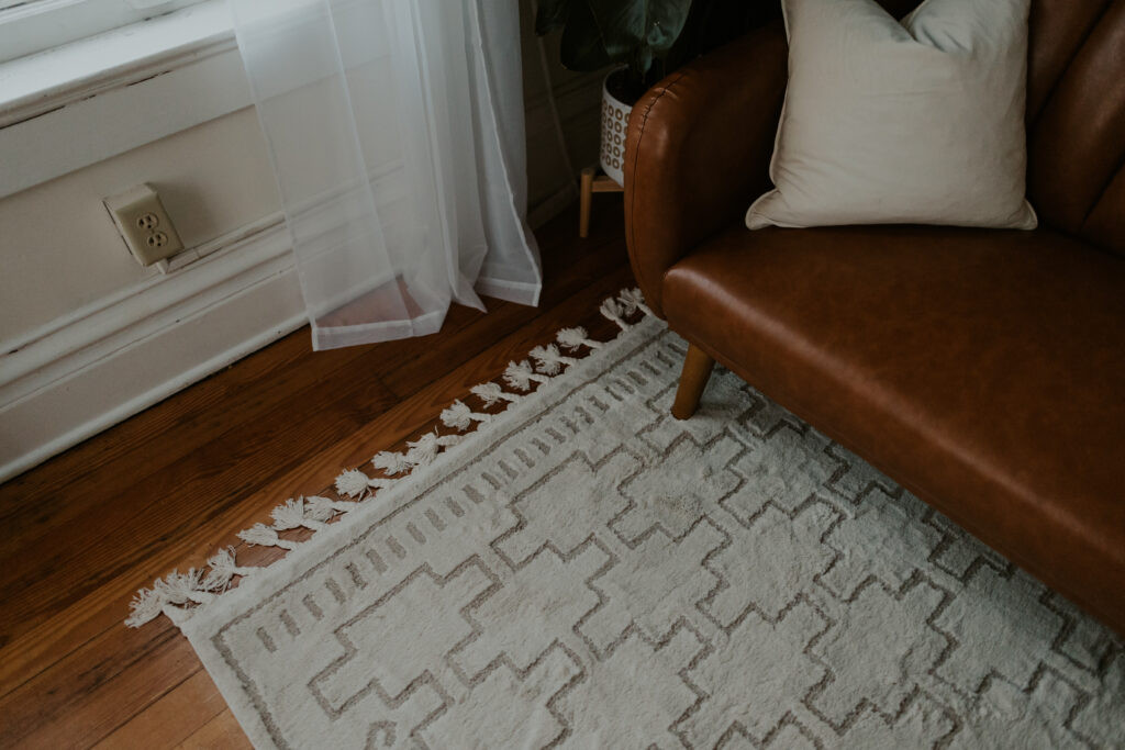 With the new gallery wall, you’ll see more texture, more nods to nature and even more neutral and earth tones (olive greens + terracotta-like oranges)! I was inspired, not only by the nature around us, but also some vintage and southwest vibes. Peep the new rug 👀