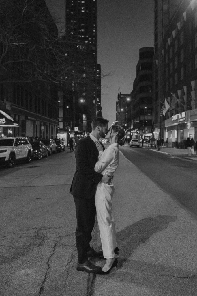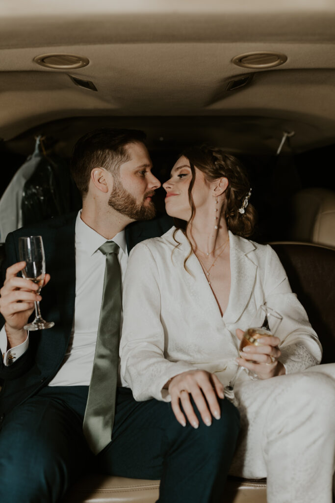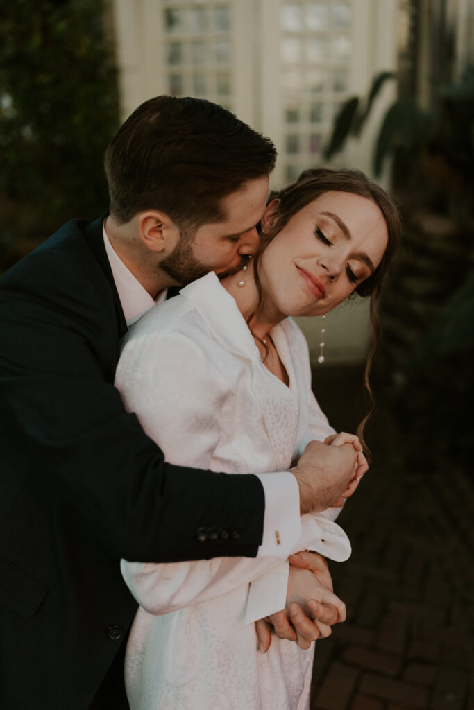 In the heart of Chicago, amidst the lush greenery of the Garfield Park Conservatory, Janie and Sean chose to celebrate their love in an intimate elopement. A place in the city that holds a special spot in their hearts, it was the perfect setting for their laid-back yet deeply meaningful ceremony. After the ceremony, but before hopping in the limo that would take us downtown for dinner at Shaw’s Crab House, Janie changed from her wedding gown into a chic white jumpsuit for one last sprint of photos around the venue. We’ll be saving Janie’s dress reveal until their larger celebration on the same date in 2025.