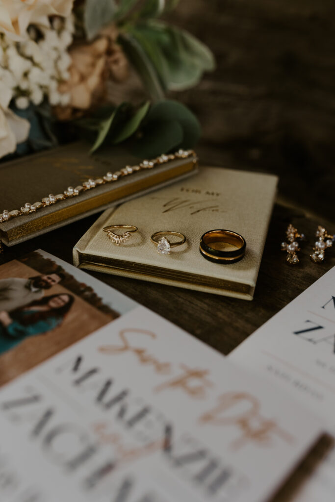 Typically, I begin my wedding day coverage with flat lay photos. This approach not only sets the tone for the rest of the day but also provides a calm, creative start before the hustle and bustle begins. I ask all couples to have their details set aside in a box for me upon arrival. This way, I can dive right into capturing these special elements without causing any disruptions.