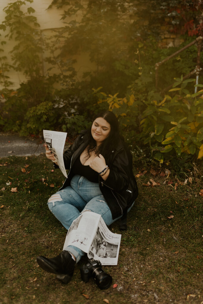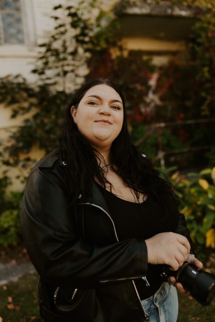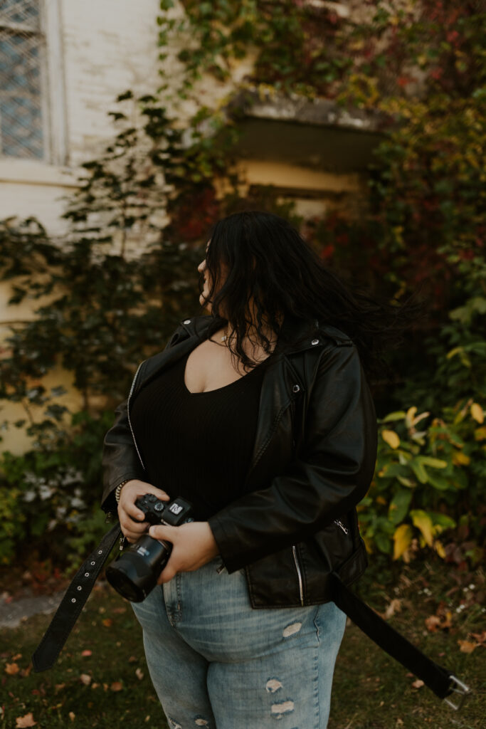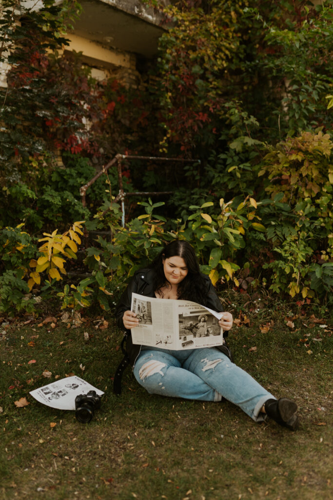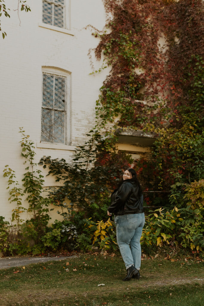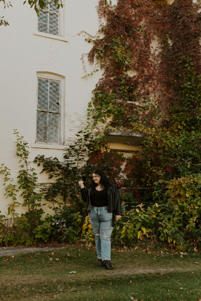Growing up, Traverse City was a place filled with childhood memories – family road trips, long weekends “up north” (a sentiment I heard all the time growing up a Michigander) and beach days along Lake Michigan’s shoreline. But this time, returning as an adult, I saw the city through a new lens. The asylum, once a place of curiosity and wonder from a distance, became the perfect backdrop for an eerie yet enchanting photoshoot. As the golden leaves blanketed the grounds, I felt both a sense of nostalgia as well as a sense of reverence for the stories held within these walls.